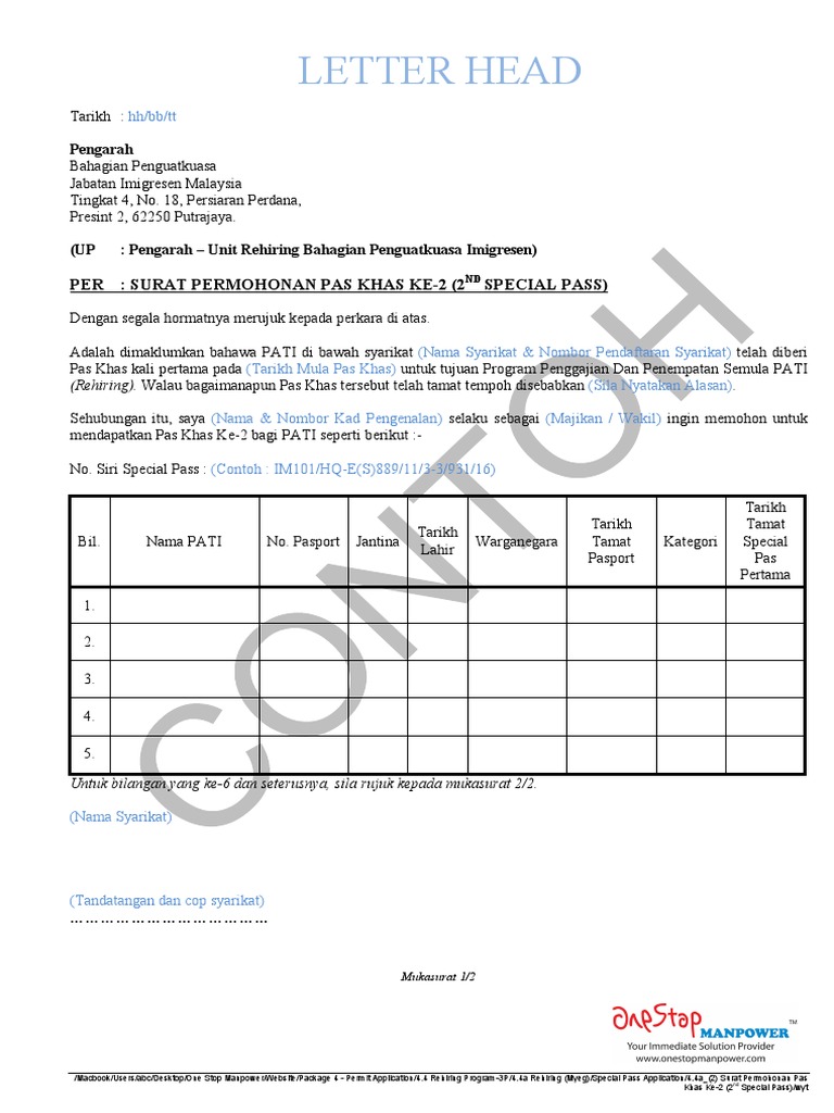 Contoh Surat Wakil Majikan Imigresen / Contoh Surat Kuasa Wakil Imigresen Kerkose. Mymemory, world's largest translation memory. .majikan kepala surat (syarikat) no rujukan : Surat somasi sendiri merupakan surat teguran maupun peringatan yang diberikan kepada pihak tertentu yang dinyatakan melanggar hukum dan peraturan. Agar anda lebih paham dan jelas tentang surat. Namun di era yang serba canggih ini sudah sedikit sekali, bahkan hampir tidak ada orang yang.